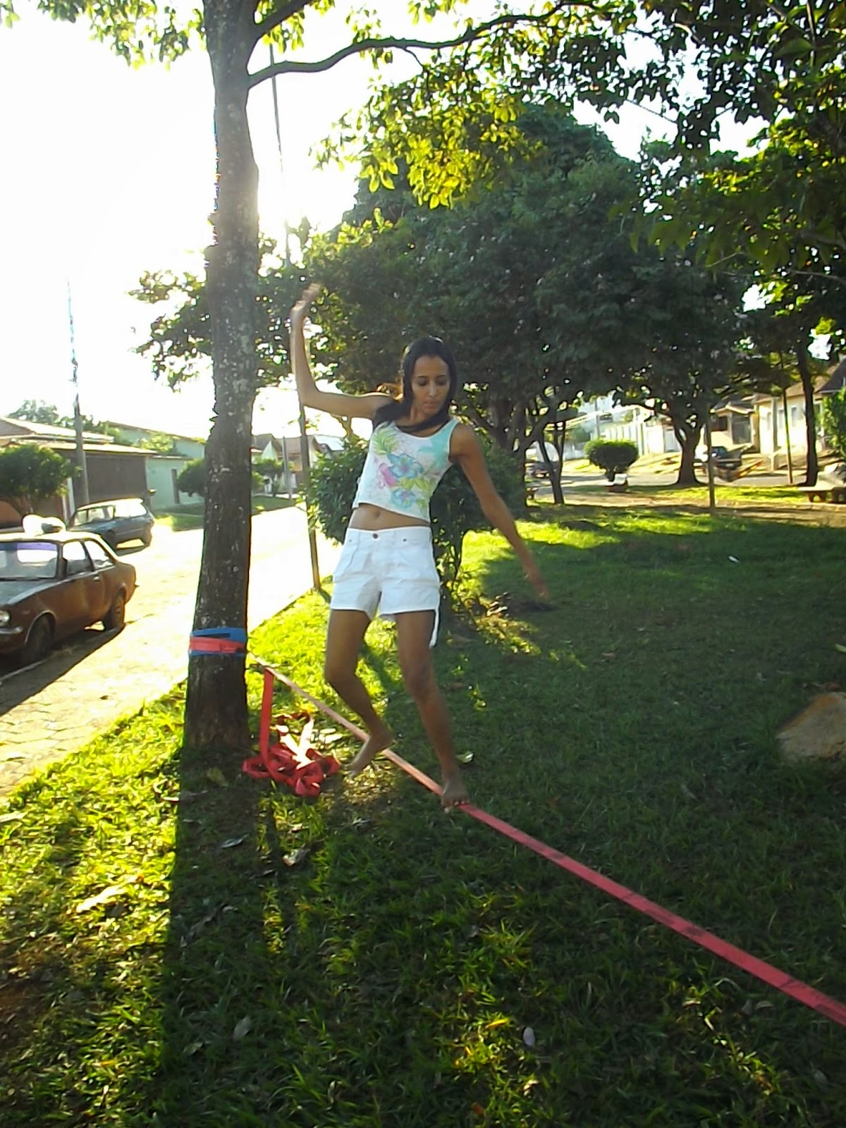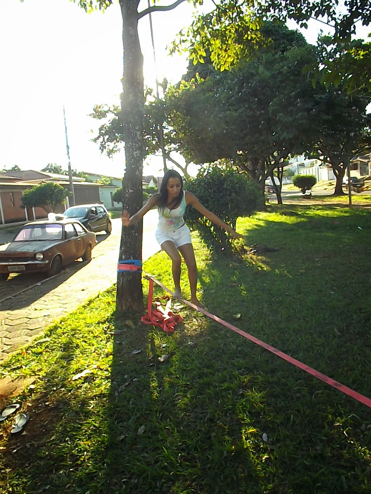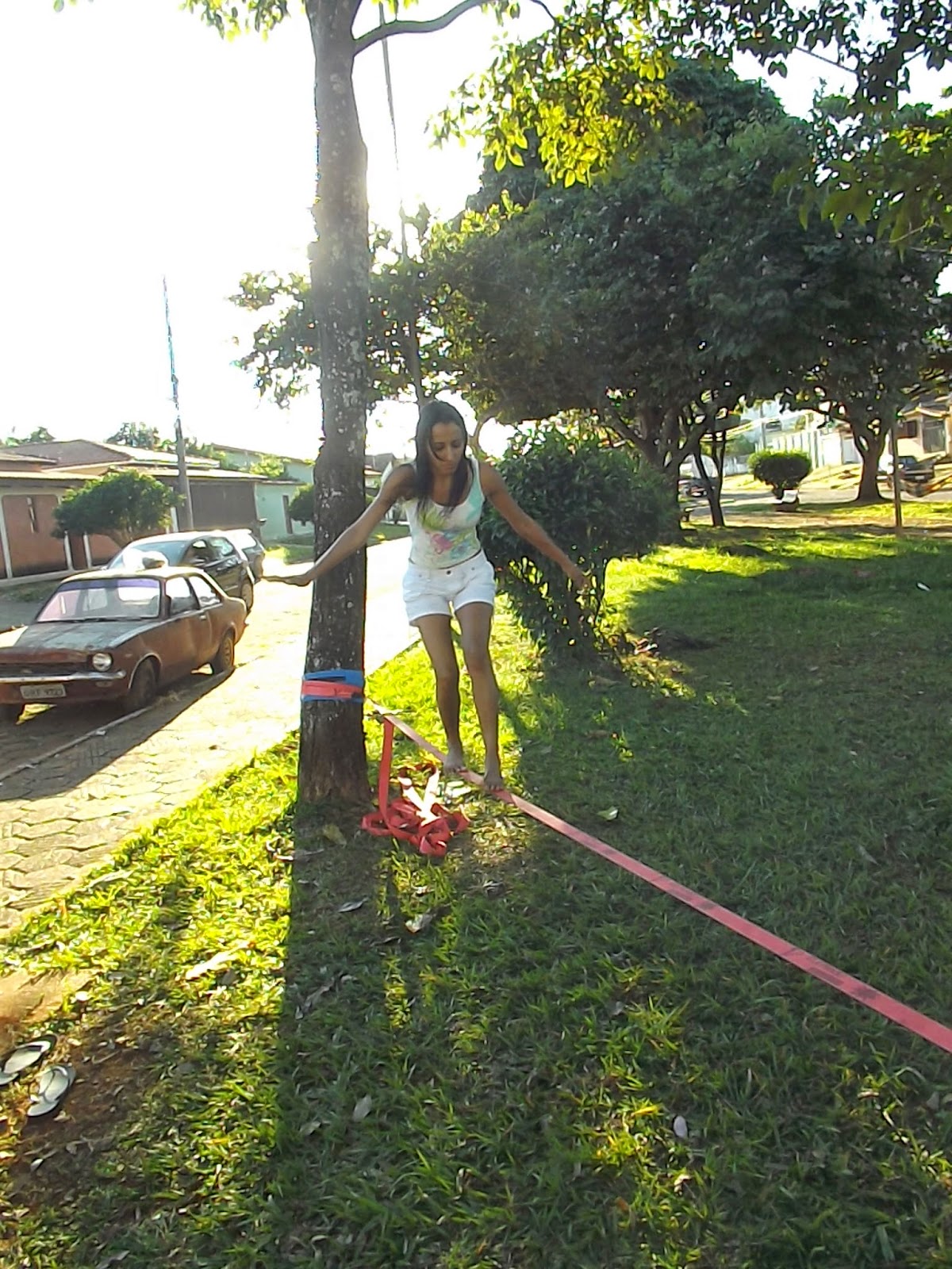 - Aprendendo andar na fita Slackline